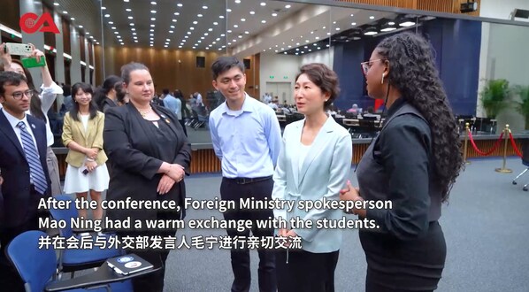 Mao shared a group photo of her with the delegates on her official X account later that night, captioning it, “A delightful exchange with Chinese and American youth.”