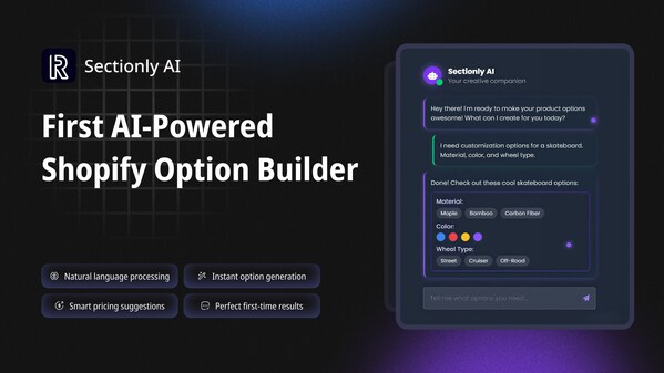 SINGAPORE, Sept. 12, 2025 /PRNewswire/ — SectionlyAI, an advanced AI project developed by the Cyberklick DTC technology team under eclicktech and built by a group of Shopify-focused product and technology experts, officially launched Sectionly AI Product Options in August 2025 — the first AI-powered app on Shopify designed to intelligently generate and manage product customization.