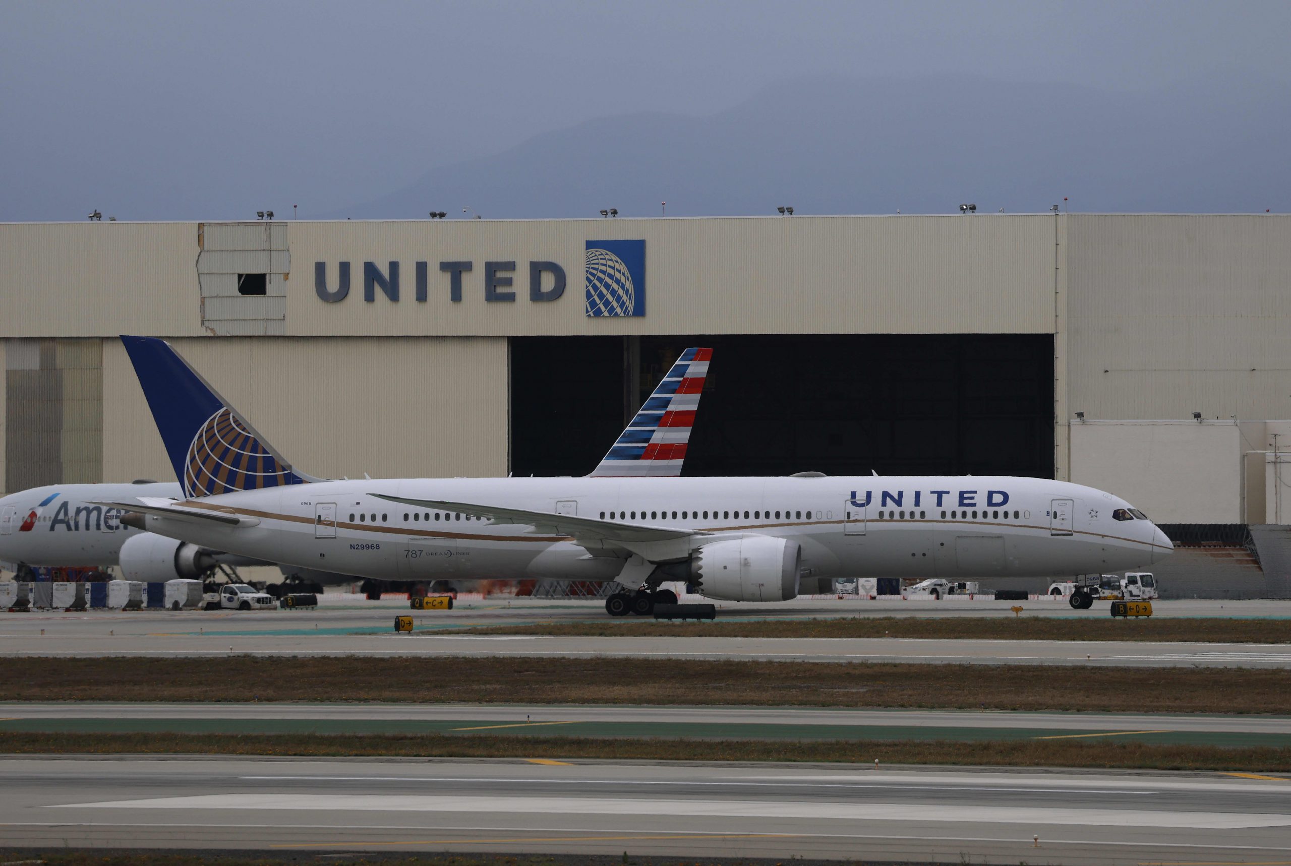 A United Airlines plane taxis at Los Angeles International Airport on April 21, 2026 in Los Angeles, California.